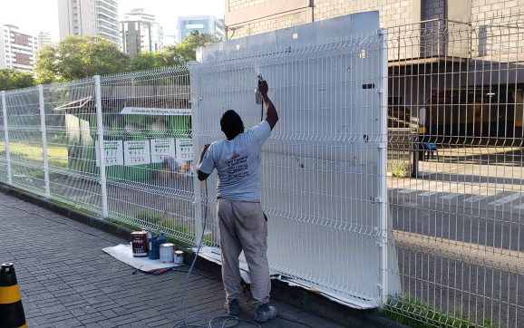 Manutenção do gradil localizado na lateral do edifício.